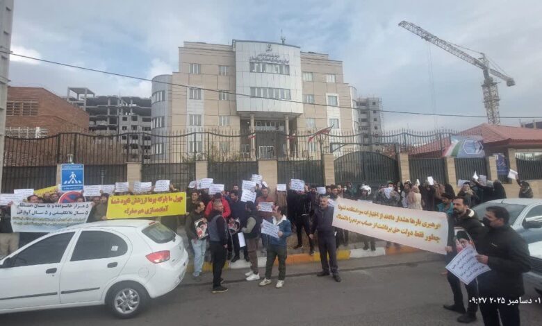 تجمع اعتراضی متقاضیان نهضت ملی زنجان مقابل سازمان بازرسی زنجان