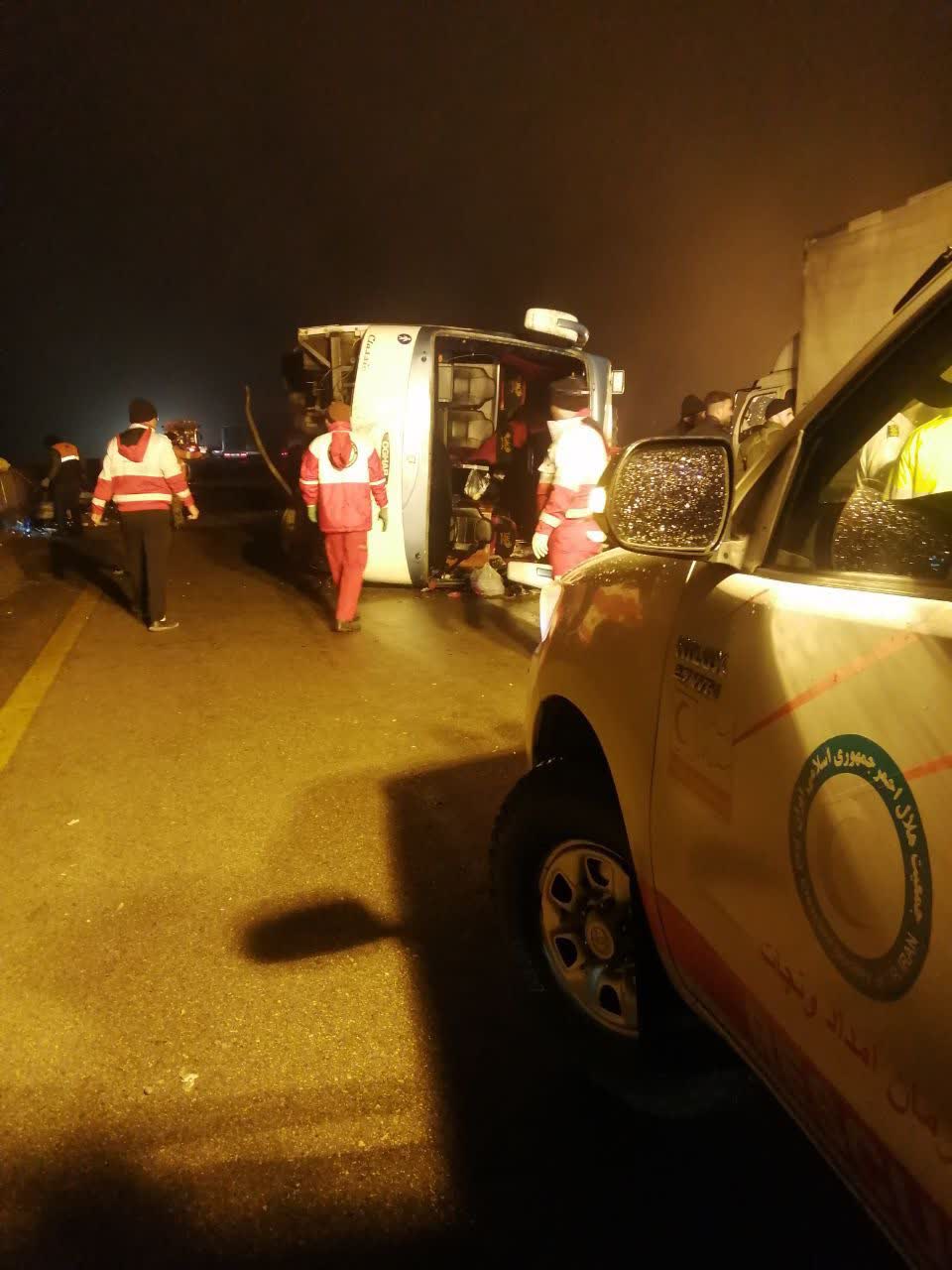 وی یادآوری کرد: این اتوبوس مسافربری با 31 سرنشین از تبریز به تهران در تردد بوده که با واژگونی 28 مسافر آن مصدوم شدند.