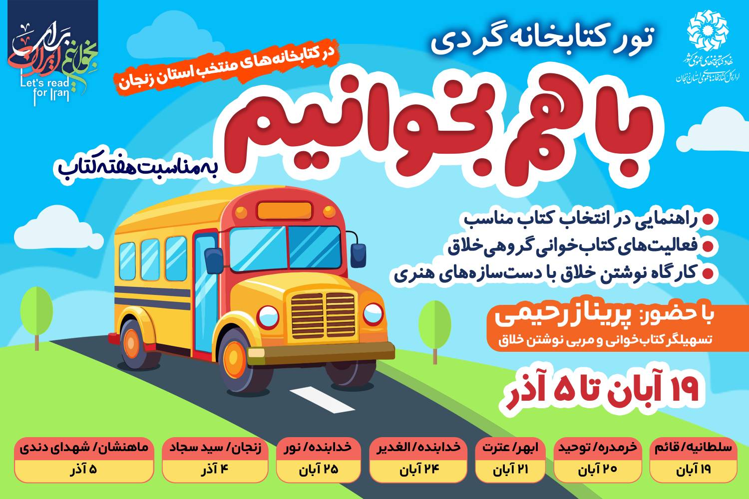 تور «باهم بخوانیم» از 19 آبان آغاز شده و تا 5 آذرماه ادامه خواهد داشت. این برنامه گامی مؤثر در جهت توسعه فرهنگ مطالعه و ارتقای سواد فرهنگی نسل آینده در استان زنجان به شمار میرود.
